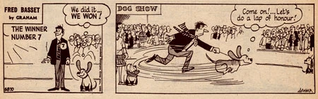 In 1963 he introduced his best-known creation, Fred Basset, a daily strip about a basset hound based on his own dog Frieda, in the Daily Mail. The strip was syndicated all over the world, and Graham continued to draw it until his death, in Hastings and Rother, Sussex, on 3 December 1991, aged 74. A backlog of unpublished strips were published for eighteen months after his death, and the strip continues, written by Basset's daughter Arran Keith and drawn by Michael Martin.