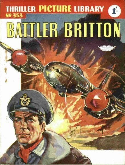 Wing Commander Robert Hereward "Battler" Britton, a World War II Spitfire pilot billed as "the fighting ace of land, sea and air", was created by writer Mike Butterworth and artist Geoff Campion, although editor Leonard Matthews supplied his name, and first appeared in The Sun in January 1956. He became the front cover star in 1958, and in 1959 The Sun was briefly renamed Battler Britton's Own Weekly, before merging into Lion. The character next appeared in Knock-Out in 1960-61, again on the cover. After that he became one of the mainstays of Thriller Picture Library, Air Ace Picture Library and War Picture Library, drawn by numerous artists, including Hugo Pratt, Francisco Solano Lopez, Ian Kennedy, Pat Nicolle and Graham Coton.