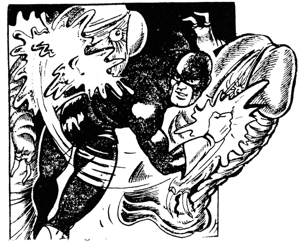 The Tornado fights The Growth, "a mass of stinking glutinous fungi" (ahem), Oh Boy! Comics, 1948-51