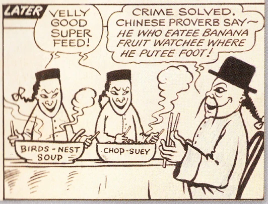 "Charlie Choo" was one of the first strips submitted by Leo Baxendale to The Beano, and was eventually printed in the 1955 annual.[1][2] Obviously inspired by Charlie Chan, it starred a Chinese detective and his two young sidekicks.