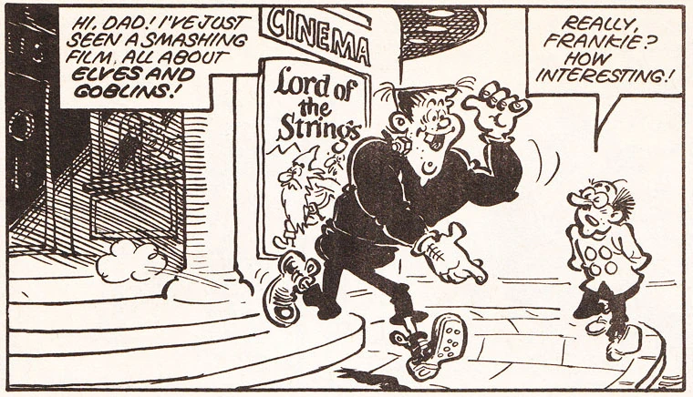 Early strips gave Frankie a sidekick in Professor Cube's biological son Micky, but this character was later dropped.