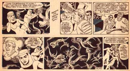 John Allard (b. c. 1928 - 7th November 2018) assisted Stephen P. Dowling on the science fiction strip Garth from shortly before its launch in 1943, drawing backgrounds and inking while studying at St Martin's School of Art. After Dowling retired he drew the strip solo from 1968 to 1971. From 1971, when Frank Bellamy took over as artist, he became one of the strip's writers. He became cartoons editor of the Daily Mirror in 1986, and created the football strip Scorer. He retired in 1992.