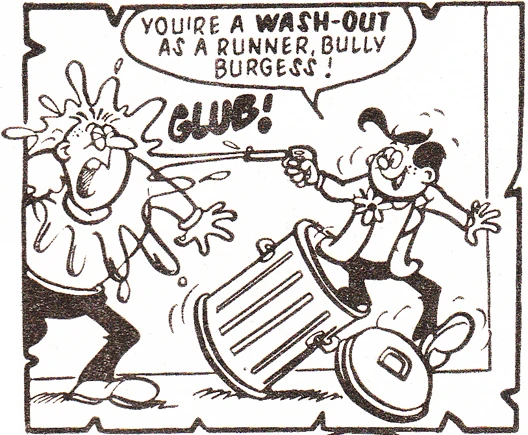 Not to be confused with Batman's archenemy, Joker was a cheeky lad who loved playing practical jokes. Sometimes his victims were bullies who got their just desserts; sometimes they were just hapless fall guys. A regular target was Joker's history teacher, Miss Honey Potts.