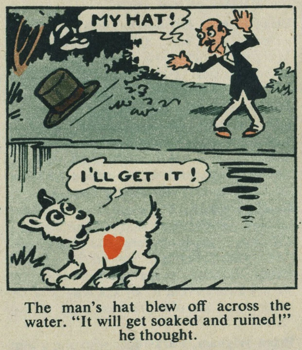 The title character was a small dog marked with a red heart-shape on his size. Kindheart always liked to help people in trouble.