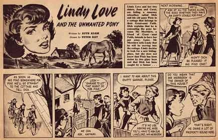 Her novel I'm Not Complaining (1938) depicted women's lives in the Depression from the point of view of an unmarried female teacher. She worked for the Ministry of Information during the Second World War, and from 1944 to 1976 she wrote the women's page for the Church of England Newspaper, which expressed her position as a Christian socialist feminist. One such article, "Comics and Shockers" in 1948, put her firmly on the same page as Marcus Morris, whose religious ideals and concerns about the influence of American comics led him to launch Eagle in 1950, and Girl the following year. Adam wrote strips for Girl, in which she attempted to counteract the passiveness of many girls' heroines by introducing young female characters who were resourceful, brave and clever. Her best-known strip was "Susan of St. Bride's" (1954-61), about a student nurse, drawn by Peter Kay, Ray Bailey and Philip Townsend, who also featured in spin-off novels written by Adam. She also wrote "Lindy Love" (1954-55), about a girl just out of school who has to care for her family, drawn by Peter Kay.
