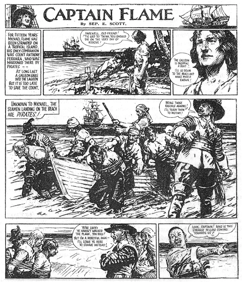 In 1948 he was recruited by Amalgamated Press editor Leonard Matthews to draw historical adventure comic strips. He illustrated the pirate series "Captain Flame" for Knock-Out from 1948 to 1953, and "The King's Captain" for The Comet from 1951 to 1952, both strips written by Matthews. He drew five issues of Thriller Comics Library, which also reprinted his "Captain Flame" and "King's Captain" serials, and painted 108 covers for the title, and several for Cowboy Comics Library, War Picture Library and Swift. He also drew strips for the girls' title Princess ("Jane Eyre", 1966) and the nursery titles Playhour ("Prince the Wonder Dog", 1954-55) and Jack and Jill ("Uncle Ben", 1961), and contributed illustrations to the educational magazine Look and Learn. He worked in comics until shortly before his death, in Brighton in the third quarter of 1966.