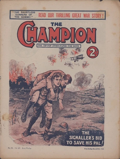 The Champion was a boys' story paper launched by Amalgamated Press in 1922 under the editorship of F. Addington Symonds, containing illustrated fiction in the sports, historical adventure, war and science fiction genres by authors such as Edward Home-Gall, George Openshaw, C. Eaton-Fearn, Dugald Cumming Skinner and Ted Cowan, all writing under a variety of pseudonyms. A companion paper in monthly pocket format, The Champion Library, was launched in 1929, containing stories from The Champion and its sister paper The Triumph, which lasted until 1940. The Champion absorbed The Triumph in 1942, and continued until 1955. The title was revived as a comic by AP's successor company Fleetway in 1966, but was soon merged into Lion.